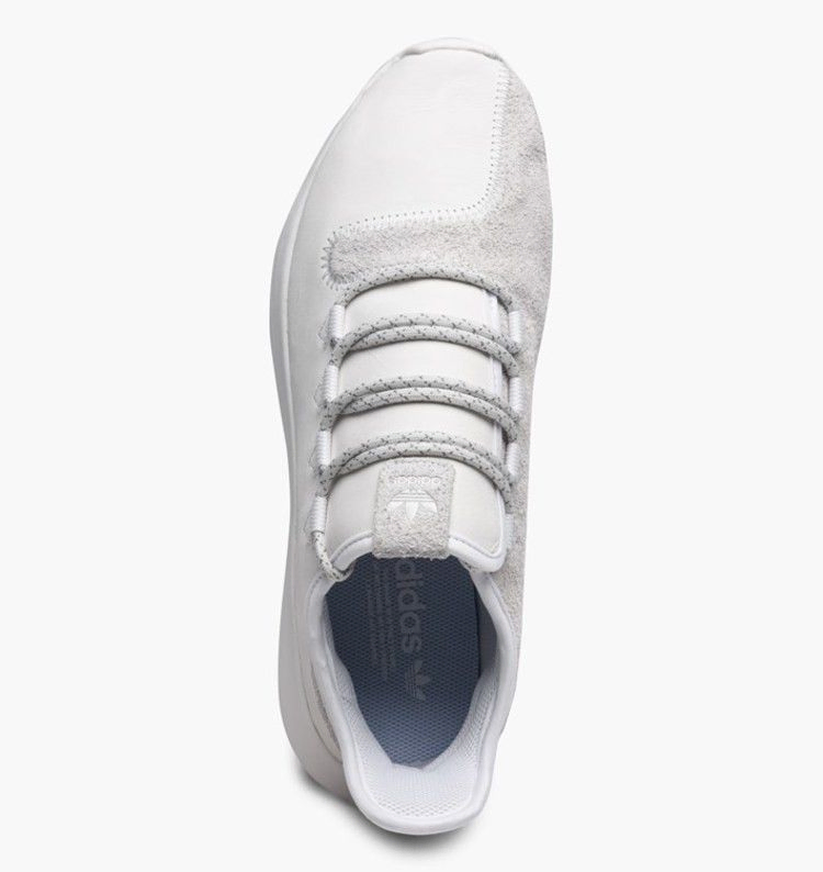 Силуэт adidas Tubular Shadow впервые появился в декабре 2016 года, изменив оригинальный дизайн 1994 года. Эта версия Tubular Shadow выполнена из замши и нубука в светлой и современной расцветке, подчеркнутой акцентами на шнурках и детальной прострочкой вокруг накладок и петель шнурков. Фирменный цельный язычок с заворачивающимся концом остался, как и уникальная подошва Tubular, на которую изначально повлиял дизайн автомобильных шин.