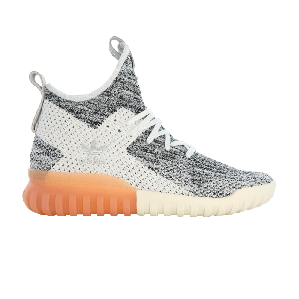 Модель Tubular X Primeknit имеет динамичный дизайн средней части верха и сочетает в себе черные и белые нити в трикотажном верхе, отделанном полностью белой частью, которая обычно покрыта структурной накладкой. Минималистичный дизайн основан на раздельной подошве, сочетающей белую подошву Tubular в носочной части и частично прозрачную резиновую подошву в пяточной части.