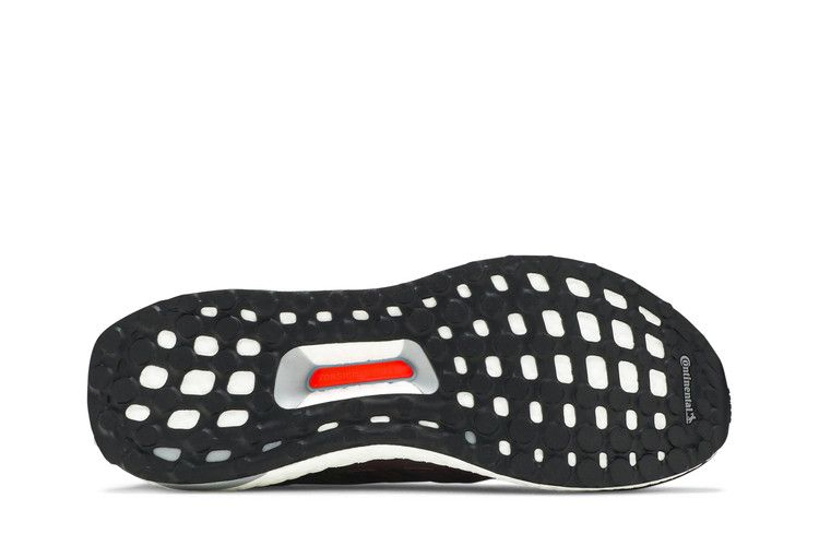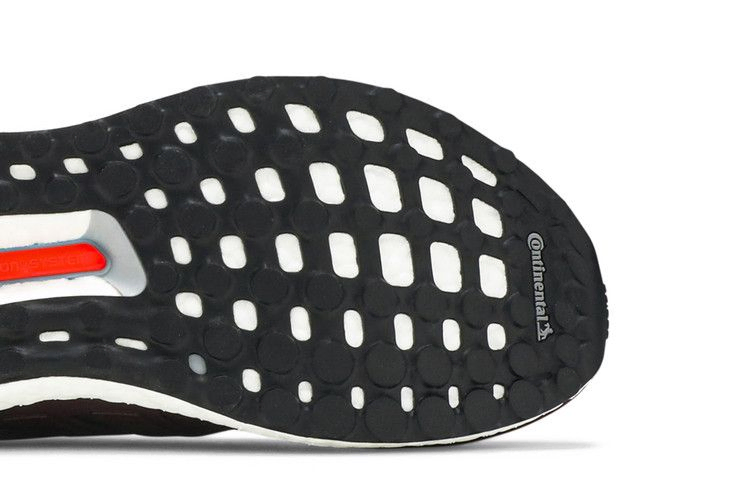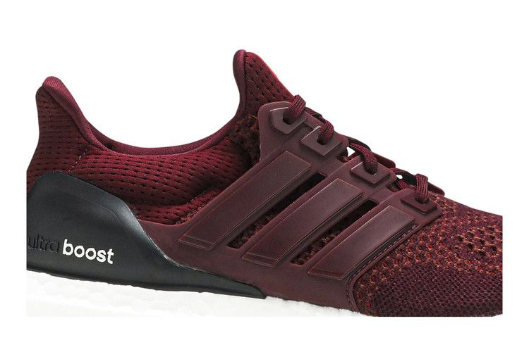 Модель adidas Ultra Boost 1.0 выполнена в бордовом цвете и напоминает носки Primeknit. Выцветшие оранжевые акценты присутствуют на язычке, а белая промежуточная подошва Boost обеспечивает амортизацию. Дополнительный оранжевый акцент присутствует на торсионной перекладине под ногами.