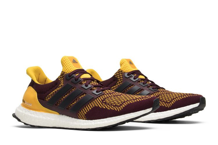 На пике популярности Ultra Boost 1.0 adidas представил несколько эксклюзивных версий знаменитых кроссовок для колледжей. В этой версии бордово-желтая расцветка Arizona State Sun Devils нанесена на верхнюю часть из материала Primeknit. Стелька добавляет еще один желтый оттенок, а белая промежуточная подошва Boost добавляет контраста и амортизации.