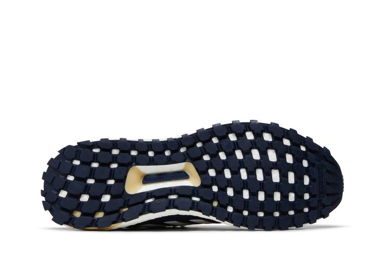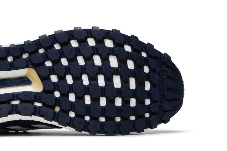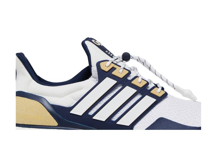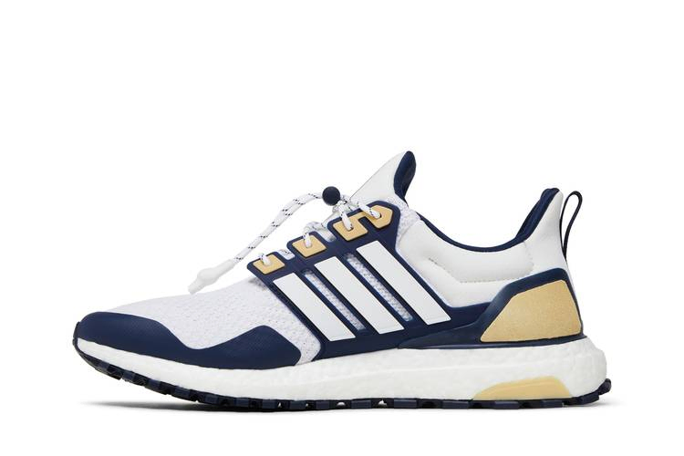 Выпущенная как часть "NCAA Pack", модель adidas UltraBoost 1.0 "Georgia Tech" одета в фирменные цвета "Желтых жакетов". Шнуровка на шнурке фиксирует белый верх из материала Primeknit, состоящий на 50% из переработанного сырья и дополненный сварной накладкой на передней части стопы цвета Collegiate Navy. Контрастные бледно-желтые акценты расположены на пяточной части и люверсах, интегрированных в формованный каркас средней части стопы с белым трехполосным брендингом. На плетеном язычке красуются логотипы adidas и GT. Кроссовки поддерживаются отзывчивой промежуточной подошвой Boost, усиленной цепкой подошвой Continental Rubber цвета морской волны.