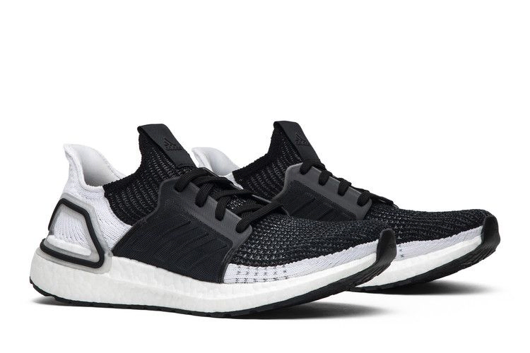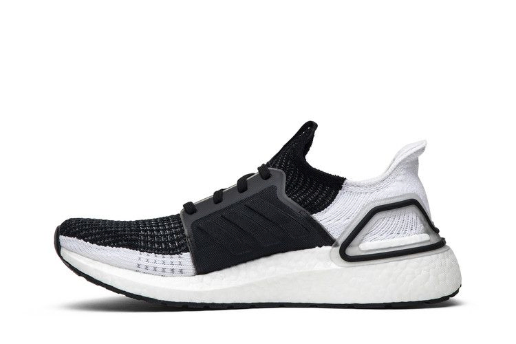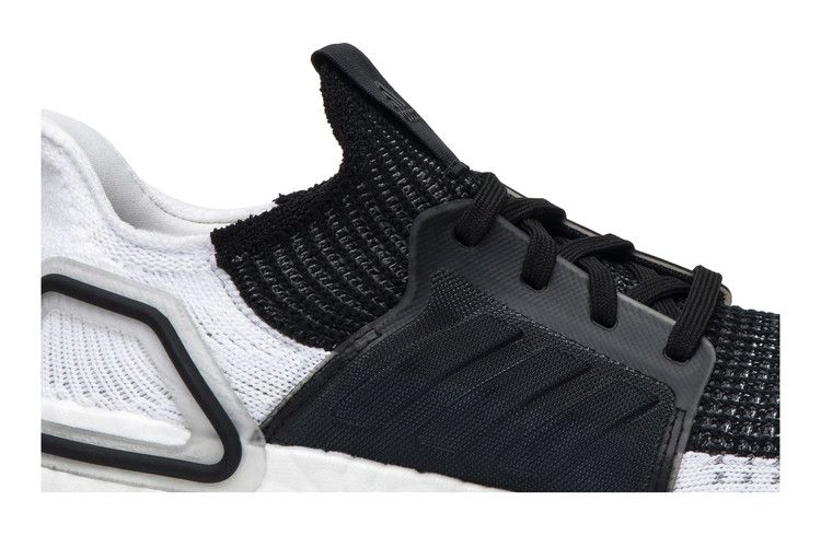 Кроссовки adidas UltraBoost 19, обновленные в 2019 году, добавили обновленные детали стиля в двухцветной расцветке "Oreo". Модель 2019 года имеет новый узор плетения на фирменном трикотажном верхе, а черно-белые детали разделены по центру. Белая подошва Boost с черным обрамлением опорной чашки пятки и черная текстурированная клетка с тональными шнурками завершают графический образ.