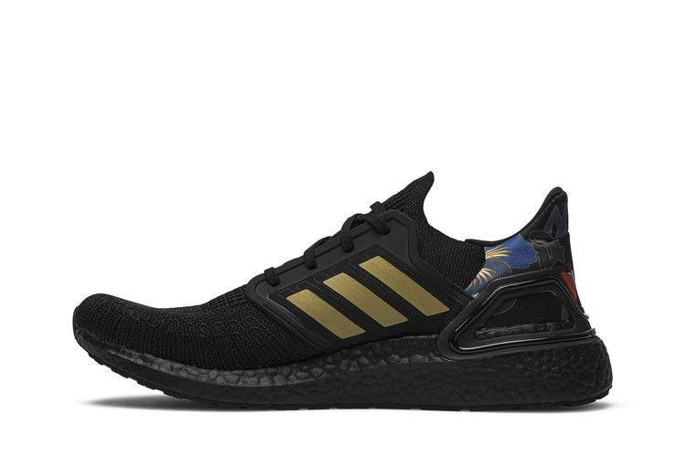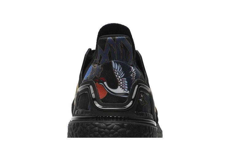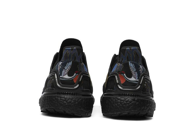Модель UltraBoost 2020 "Chinese New Year" посвящена лунному празднику с иллюстрированной графикой журавля на пяточной панели. Остальная часть верха выполнена из черного материала Primeknit, дополненного вшитыми волокнами Tailored Fiber Placement и формованной клеткой в средней части стопы. Последний акцентирован золотистыми металлическими полосками, сочетающимися с брендингом adidas на язычке. Легкая и отзывчивая амортизация обеспечивается за счет полноразмерной промежуточной подошвы Boost, окрашенной в черный цвет.