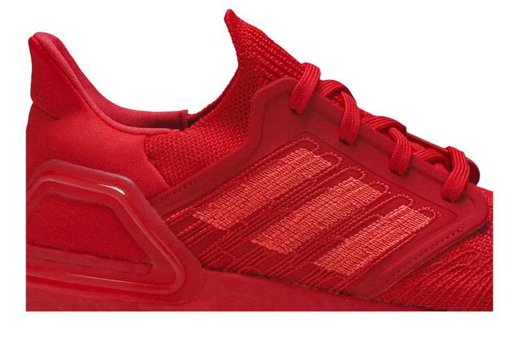 Модель UltraBoost 2020 "Solar Red" окрашена в монохроматический малиновый цвет и имеет легкую конструкцию, сочетающую дышащий материал Primeknit с мягким эластаном на пятке для более комфортной посадки. Красная межподошва, обеспечивающая на 20% больше амортизации Boost, чем оригинальные UltraBoost от adidas, опирается на контрастную черную подошву Stretchweb, в которой используется резина Continental Rubber для превосходного сцепления.