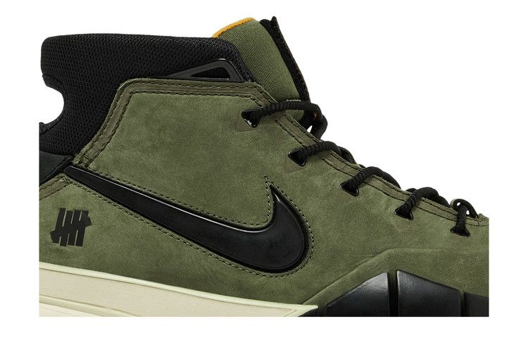Undefeated x Nike Zoom Kobe 1 Protro 'Flight Jacket' никогда не выпускались для широкой публики и были предоставлены только друзьям и родственникам Nike Basketball и UNDFTD. В культовой цветовой палитре, вдохновленной летными куртками ВВС, насыщенный оливково-зеленый цвет использован для отделки верха из нубука и текстиля, шнурков и свушей. На язычке расположены нашивки с двумя номерами Брайанта. Контрастный вид придают увеличенная подошва и промежуточная подошва Zoom Air.