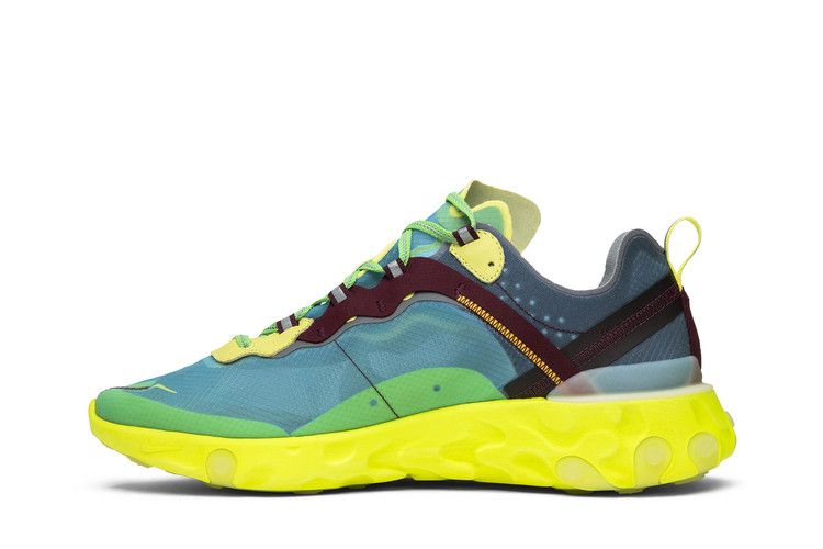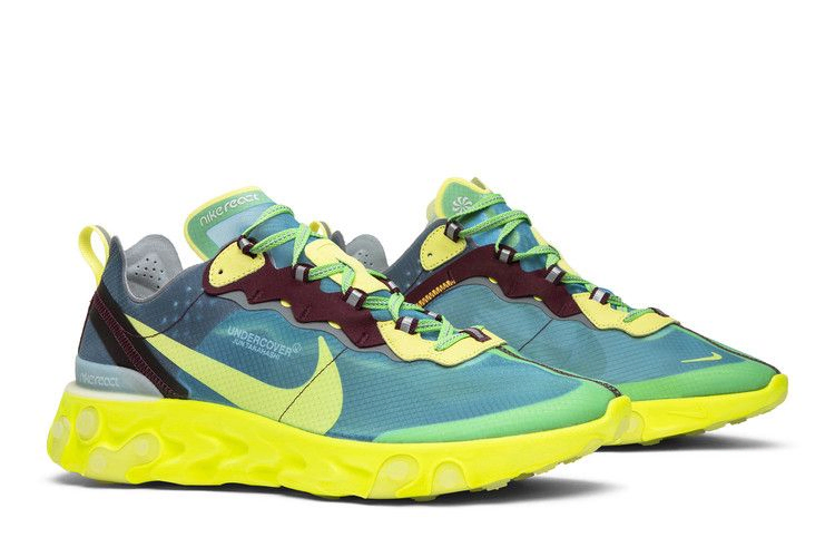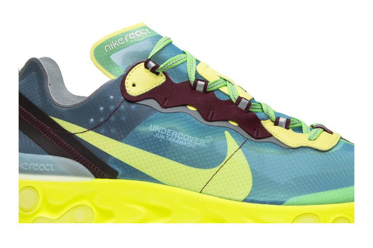 Сотрудничество Nike React Element 87 с японским ритейлером UNDERCOVER произвело фурор в 2018 году, представив модель Lakeside, отличающуюся прозрачным верхом из TPU с разноцветным шариковым принтом и межподошвой из пеноматериала React цвета Electric Yellow. Другие фирменные детали включают в себя двухцветные шнурки, желтые свуши, бордовые панели и строчки.