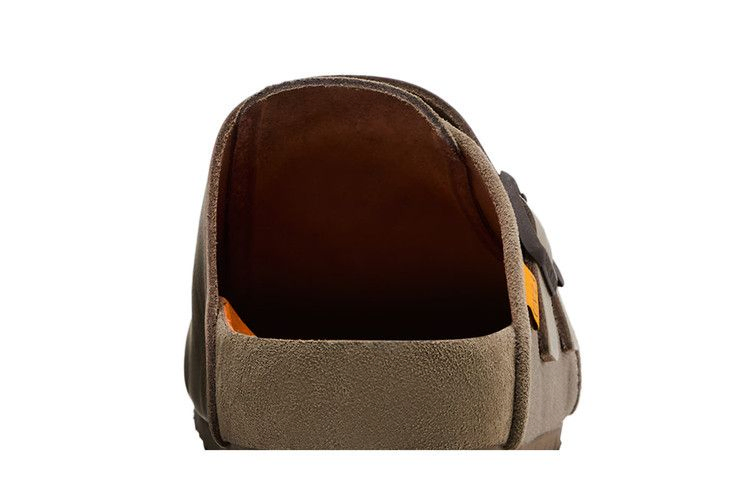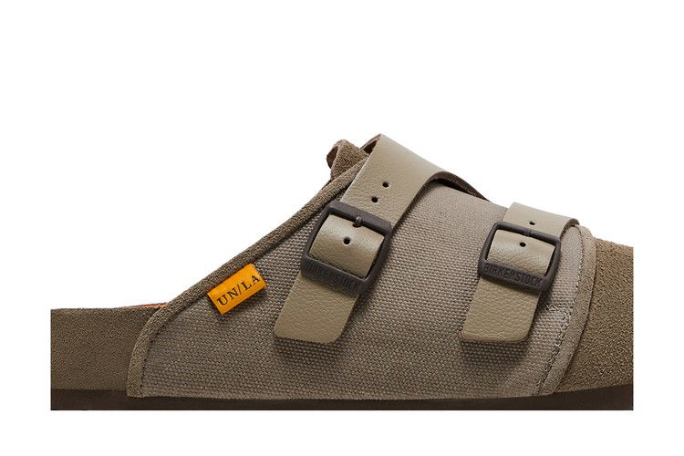 Модель Union LA x Birkenstock Bimshire 'Beige Taupe', созданная из двух частей, представляет собой силуэт, заимствующий элементы моделей Boston и Zurich. Фирменный светло-коричневый оттенок Birkenstock нанесен на замшевый верх, закрепленный регулируемыми кожаными ремешками и широким холщовым ремешком. Брендинг Union LA расположен на стельке из пробкового латекса, выстланной оранжевой кожей наппа. Вырезанная под давлением подошва из ЭВА обеспечивает комфортное передвижение.
