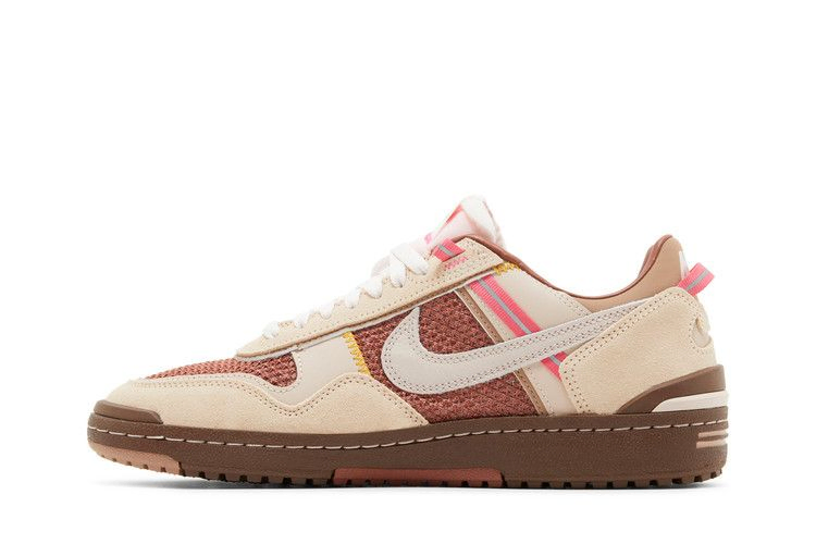 Union LA x Nike Field General 'Shimmer' - это модель из совместного пакета из трех частей, который переосмысливает винтажные футбольные бутсы 80-х годов как современный силуэт. Эксклюзивная модель Union имеет воздухопроницаемую сетчатую конструкцию Silt Red с кожаными и замшевыми накладками контрастного бежевого оттенка. Розовая тесьма со светоотражающими деталями украшает верхние люверсы и застежку на пятке. Небольшой желтый ярлык с брендингом UN/LA расположен на боковом заднике, в то время как несовпадающие ярлыки Nike и Union украшают каждый язычок. Подошва из коричневой резины с тисненым логотипом Union на боковой стороне.