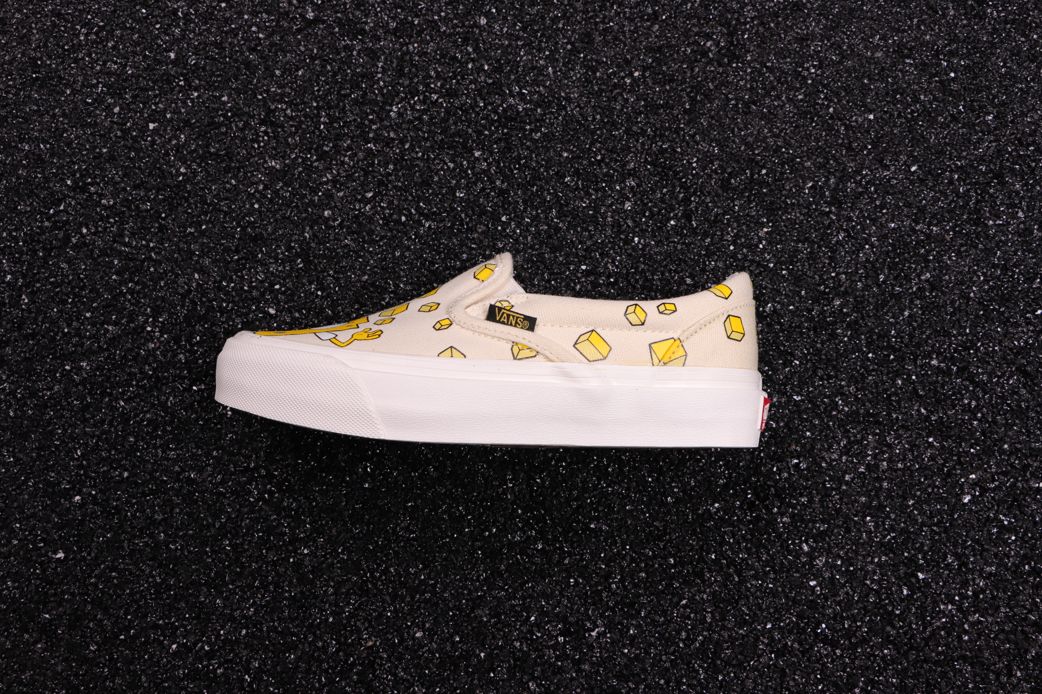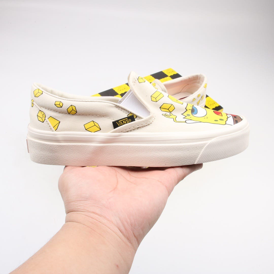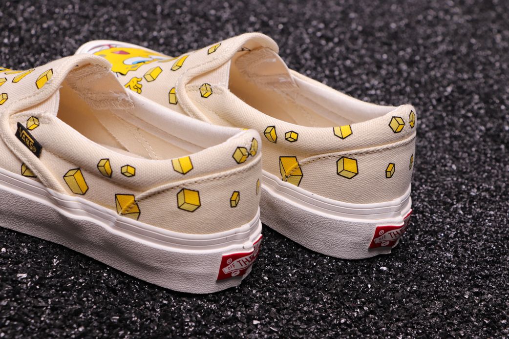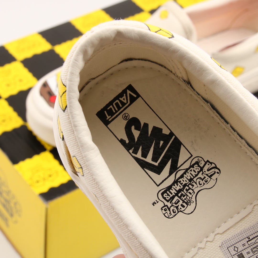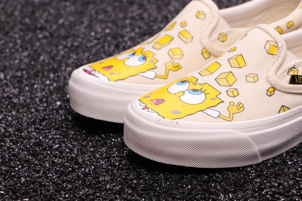 Модель OG Classic Slip-On LX 'Spongebob', выпущенная в феврале 2018 года в рамках более масштабного сотрудничества между Vans и классическим шоу Nickelodeon SpongeBob SquarePants, демонстрирует главный персонаж на мыске обуви. Сверху головы Губки Боба ряд маленьких желтых кубиков губки покрывает остальную часть холста Off-White, а резиновая межподошва окрашена в цвет Off-White. Под ногами вафельная подошва с тисненым изображением планктона.- Цвета: Checkerboard Block
