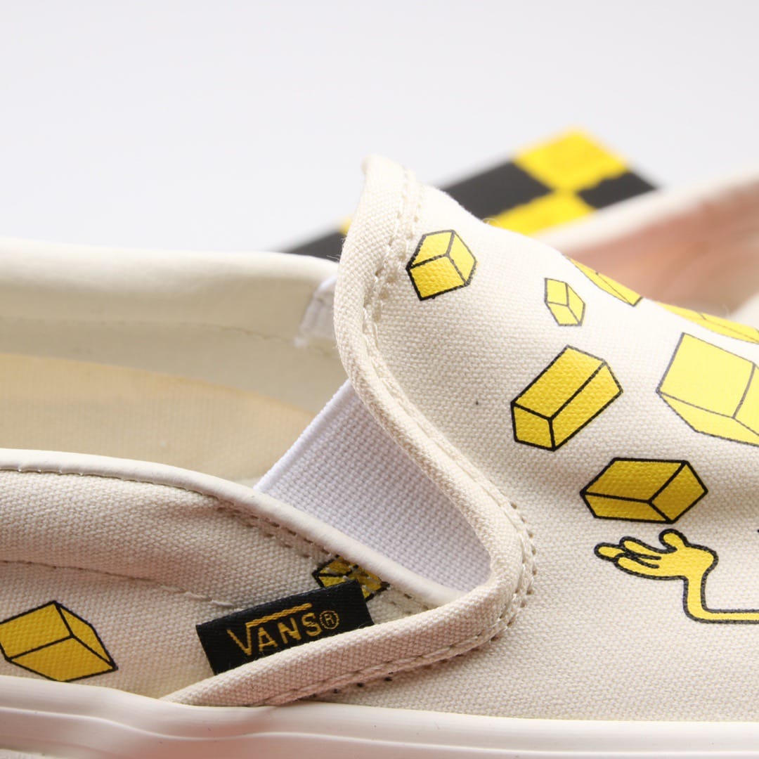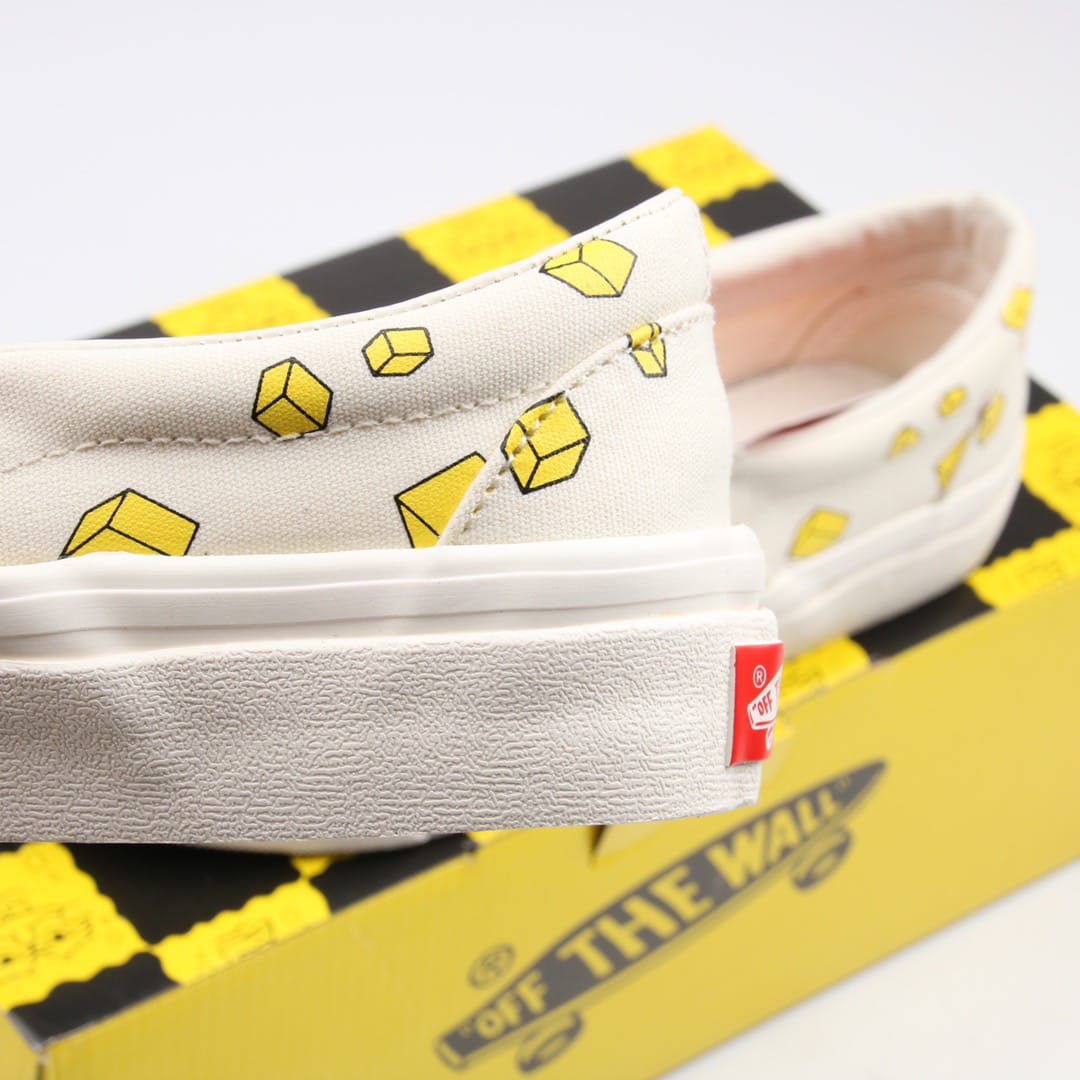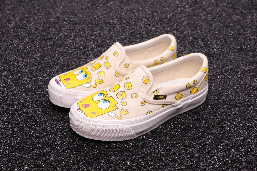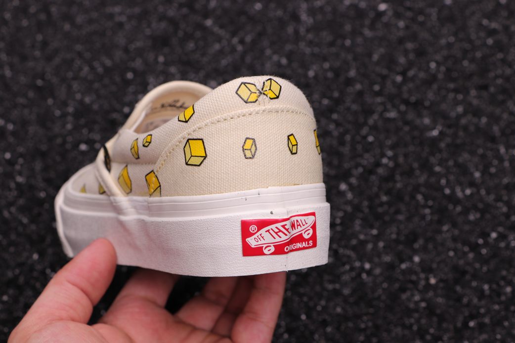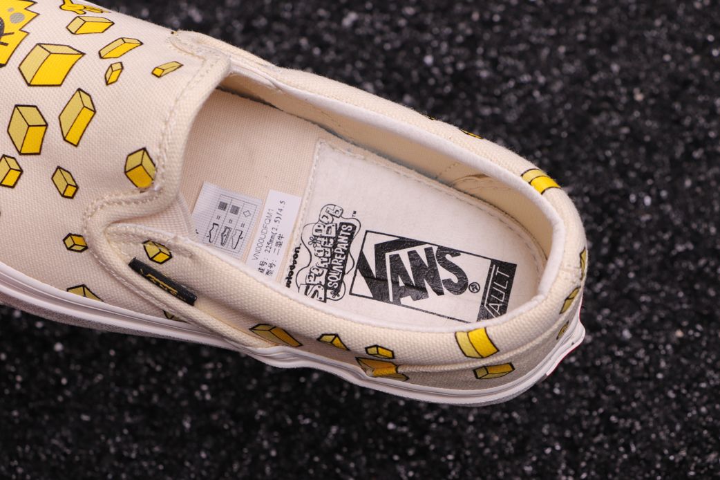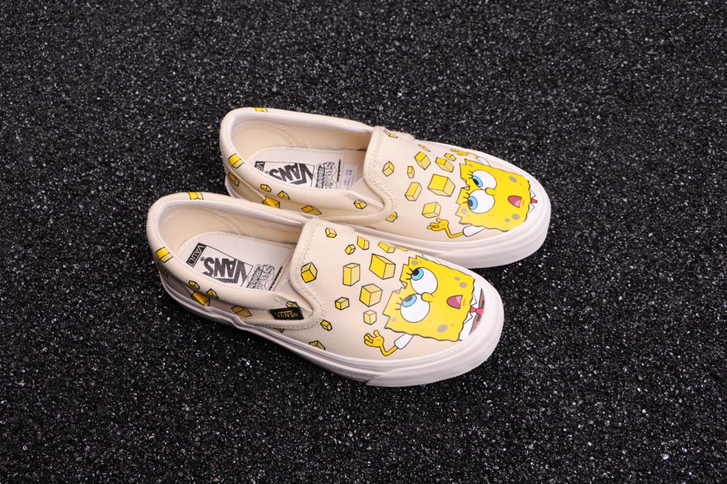 Модель OG Classic Slip-On LX 'Spongebob', выпущенная в феврале 2018 года в рамках более масштабного сотрудничества между Vans и классическим шоу Nickelodeon SpongeBob SquarePants, демонстрирует главный персонаж на мыске обуви. Сверху головы Губки Боба ряд маленьких желтых кубиков губки покрывает остальную часть холста Off-White, а резиновая межподошва окрашена в цвет Off-White. Под ногами вафельная подошва с тисненым изображением планктона.- Цвета: Checkerboard Block
