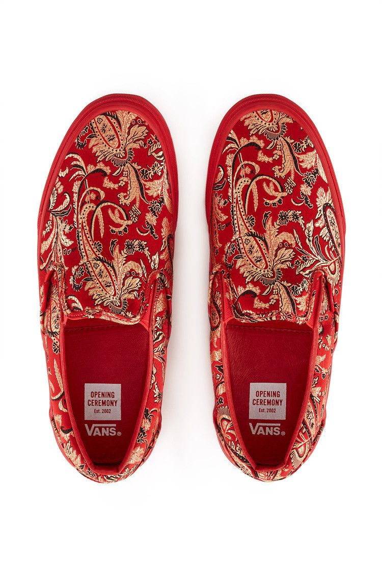 Компания Vans объединилась с Opening Ceremony (OC), чтобы выпустить инновационную версию классического силуэта Slip-On в честь Года Китая 2016. Модель Opening Ceremony x Slip-On LX 'Qi Pao II Red' имеет красный атласный верх с цветочной вышивкой, напоминающей о китайской парче с драконами. Низкий верх также имеет эластичную боковую часть для удобной посадки, мягкий воротник для дополнительного комфорта и вафельную подошву для лучшего сцепления.