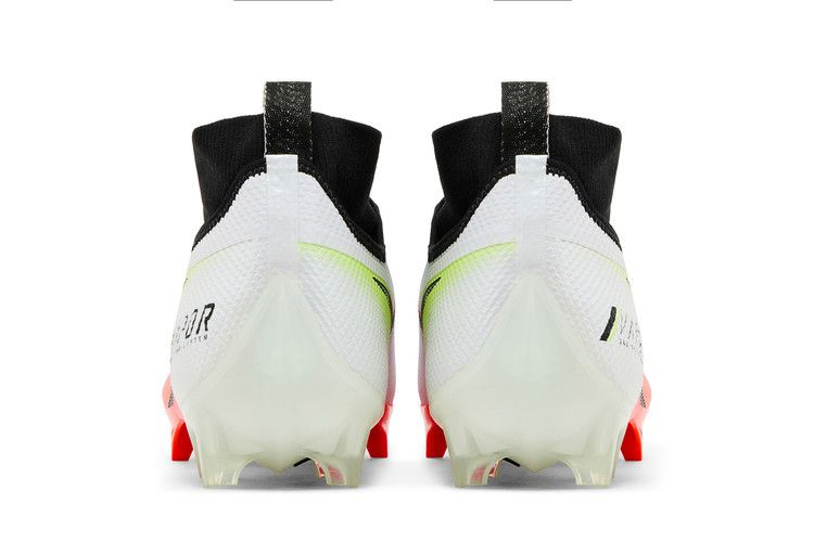 Nike Vapor Edge Pro 360 Premium "White Crimson" имеют черный трикотажный воротник, похожий на носок, и белый текстильный верх, украшенный напечатанным логотипом Swoosh, выделенным сочетанием цветов Solar Red и Volt. Бесшовная накладка расположена на системе Ghost Lace с удобной конструкцией "одно нажатие", а стелька NikeGRIP фиксирует стопу во время быстрых ударов. Под ногами стратегически расположенные бутсы обеспечивают превосходное сцепление и тягу.
