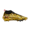 В кроссовках Nike Vapor Edge Pro OBJ "Metallic Vivid Gold" используется эластичный трикотажный верх, закрепленный системой шнуровки "призрак" и эластичной манжетой на лодыжке. Прочная накладка выполнена в золотистом металлическом цвете с разбросанным черно-белым тигровым принтом - кивок в сторону корней Оделла Бекхэма-младшего из LSU. Личный логотип звезды НФЛ украшает язычок и носок. Вместо традиционной подошвы внутреннее шасси обеспечивает гибкую поддержку всей стопы. Широкие шипы под подошвой обеспечивают сцепление с поверхностью, необходимое для быстрых сокращений и ускорений.