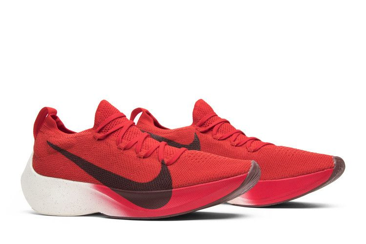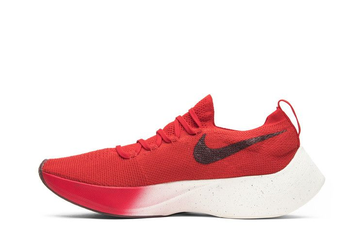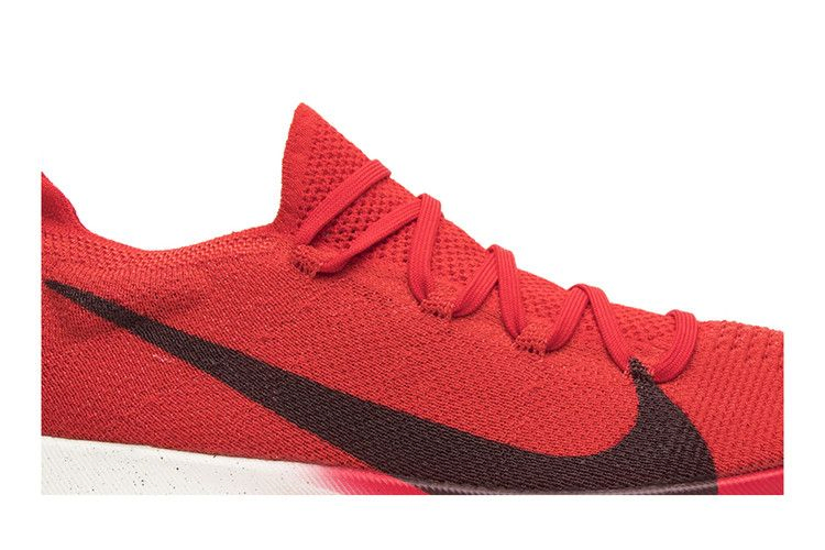 Нетрадиционный дизайн Vapor Street Flyknit "University Red" заимствует инновационный материал Flyknit из модели Vaporfly Elite и сочетает его с отзывчивой амортизацией React по всей межподошве. Верхняя часть University Red украшена увеличенным логотипом Swoosh, который спускается к межподошве и имеет градиентную отделку.