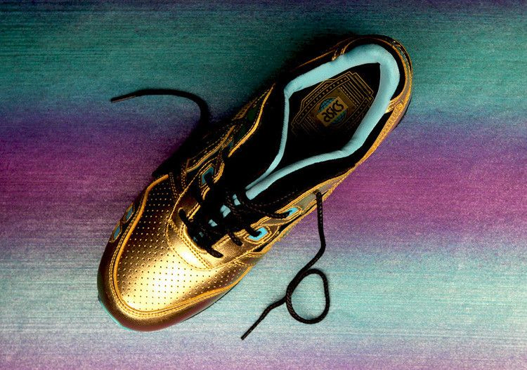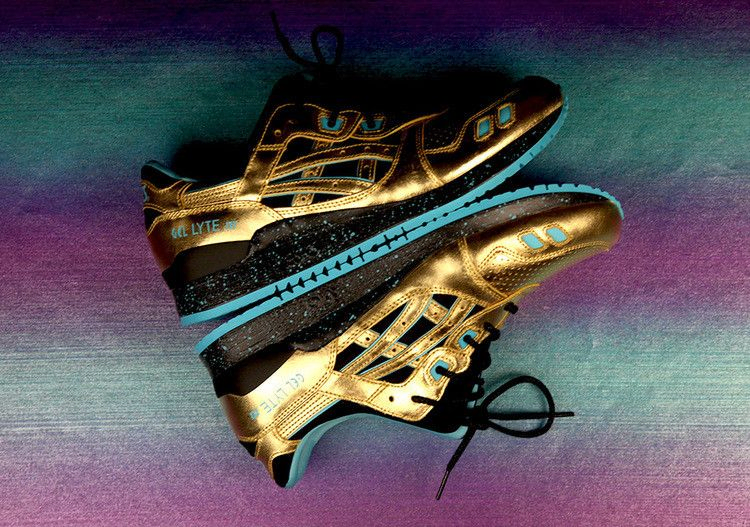 Модель Gel Lyte 3 "Intercontinental Champion", созданная в сотрудничестве с Уэйлом, отражает страсть рэпера к профессиональному рестлингу. Ретро-кроссовки, известные своей уникальной конструкцией с раздвоенным язычком, имеют золотисто-металлический верх, вдохновленный знаменитым поясом Интерконтинентального чемпионата WWE. Золотая отделка дополнена акцентами тилового цвета и черной подошвой в крапинку.