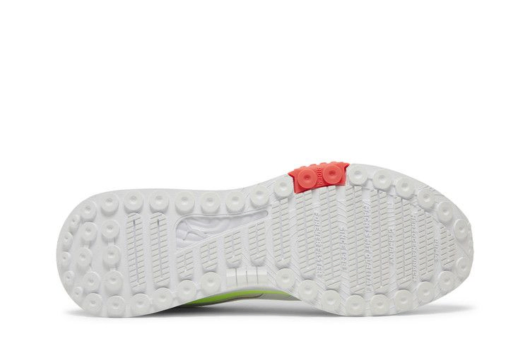 В модели PUMA Wild Rider 'Spectra' белый текстильный верх покрыт множеством цветных полос, имитирующих преломляющуюся графику и флаги стран мира. Белая кожа с полиуретановым покрытием использована на носке, заднике и фирменной полоске Formstrip, а контрастная синяя кожаная накладка облегает пятку. Красные детали из TPU добавляют цветовые акценты к задней части пятки и литой подошве EVA, обеспечивая легкую амортизацию при каждом шаге.