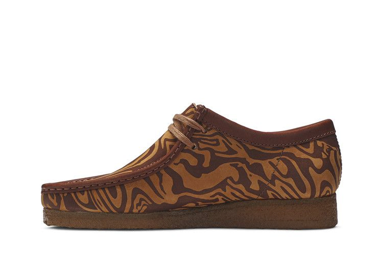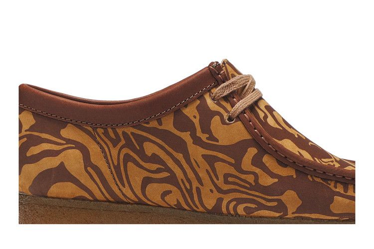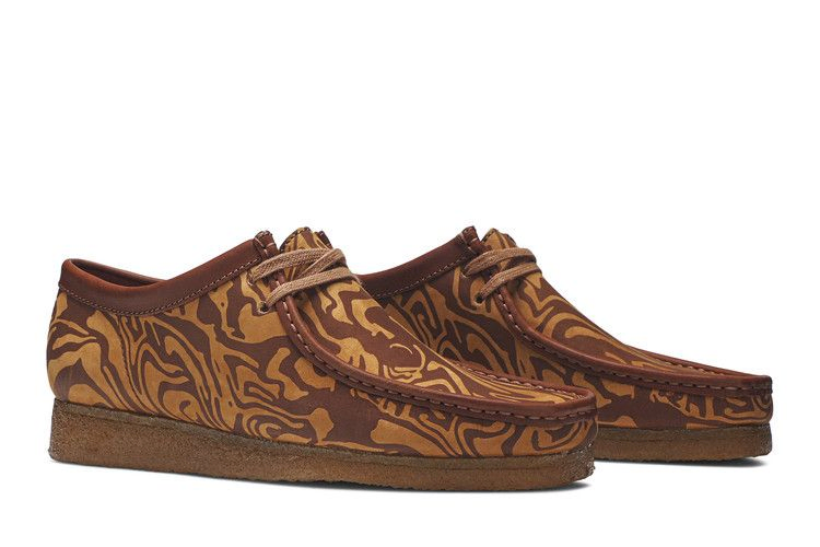 Легендарный бренд Clarks сотрудничает с Wu Wear для создания уличной обуви Wu Wear x Wallabee на июль 2019 года. Удобные ботинки, выполненные в мраморном цвете "Карамель", отличаются эластичным замшевым верхом и замшевой подкладкой, создающей уютную атмосферу, напоминающую мокасины. Кожаные вставки на лодыжке и вокруг носка скрепляют дизайн и придают силуэту облегающий вид. Подошва из креповой резины минимизирует скольжение и улучшает сцепление с поверхностью.