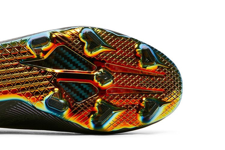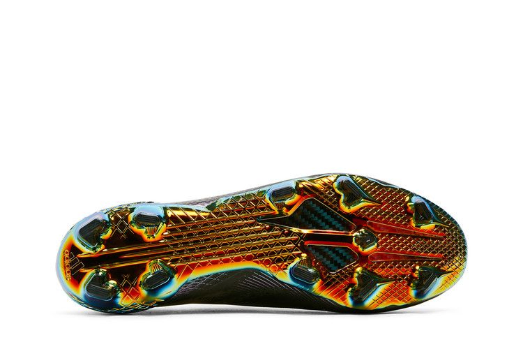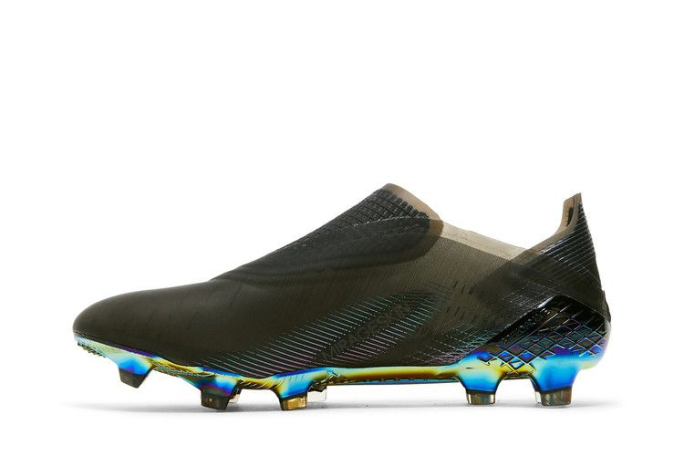 Футбольные бутсы adidas X Ghosted+ FG 'Core Black', предназначенные для игры на твердом грунте, имеют беззамковую конструкцию, низкий когтевой воротник и верх из тонкого материала Mireageskin. Первый материал обеспечивает полный диапазон движений, а второй - три легких слоя для вакуумной посадки. Обтекаемый силуэт опирается на подошву Speedframe из углеродного волокна с переливающимся покрытием и стратегически расположенными шипами.