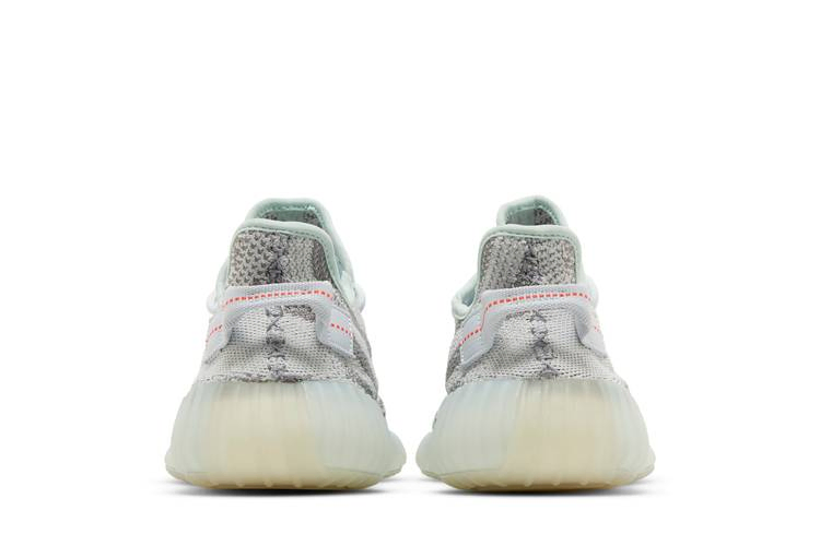 Модель Yeezy Boost 350 V2 "Blue Tint" 2023 года выпуска возрождает расцветку, впервые представленную в декабре 2017 года, а затем вновь поступившую в продажу в январе 2022 года. Серо-белый узор украшает верхнюю часть Primeknit, а красная надпись "SPLY-350" нанесена в обратном порядке на боковой стороне. Светло-голубой оттенок присутствует на подкладке, а также на полупрозрачной подошве из TPU. Полноразмерный блок Boost обеспечивает легкую амортизацию.