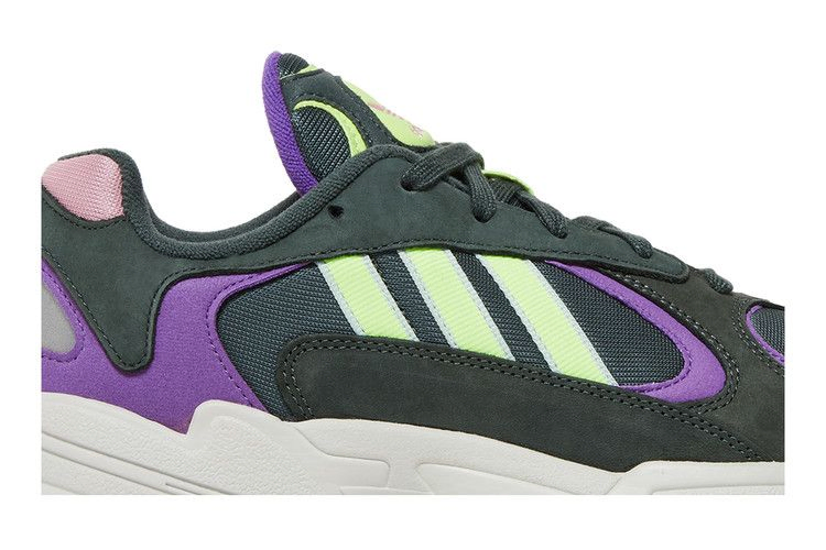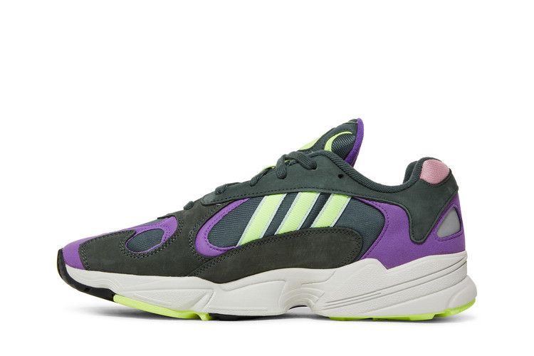 Модель adidas Yung-1 "Legend Ivy" сочетает контрастные акценты в многослойном верхе, выполненном из дышащей сетчатой ткани темно-серого цвета. Накладки из нубука дополнены фиолетовыми кожаными деталями и флуоресцентными желтыми полосками. Сформированная подошва из пеноматериала EVA поддерживается подошвой из резины с высоким коэффициентом сцепления, а система adidas Torsion обеспечивает дополнительную устойчивость.