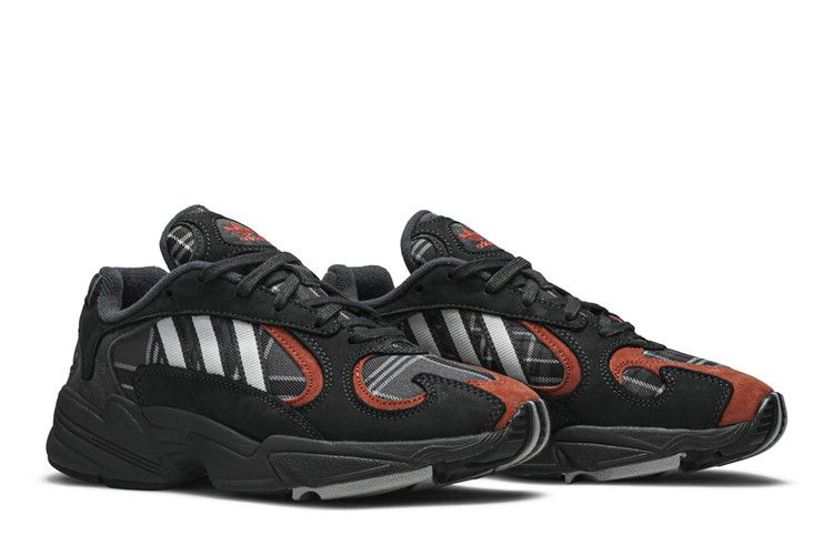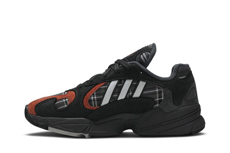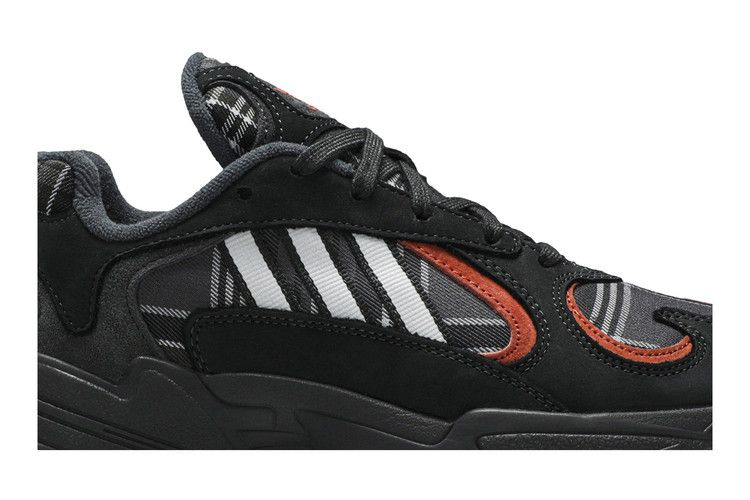 В модели Yung-1 'Orange Plaid' adidas придает своим беговым кроссовкам стиль тартан. Серый клетчатый узор на текстильном верхе кроссовок дополнен серыми накладками из нубука и серой скульптурной подошвой. Контрастный цвет придают белые нейлоновые полоски и оранжевая окантовка вокруг передней части стопы.