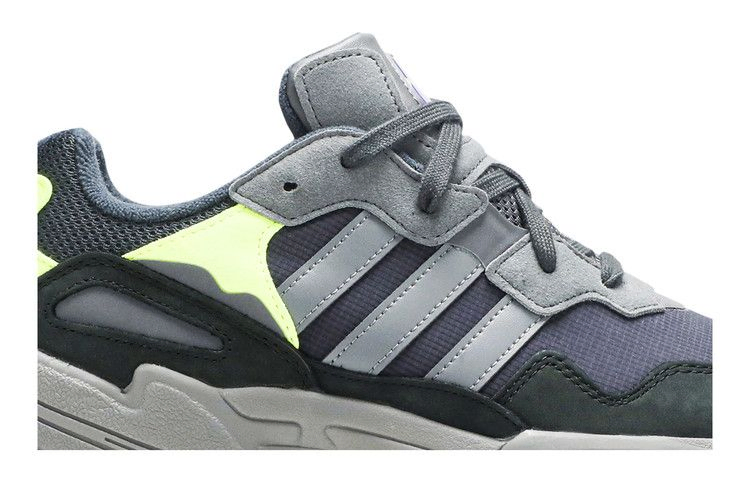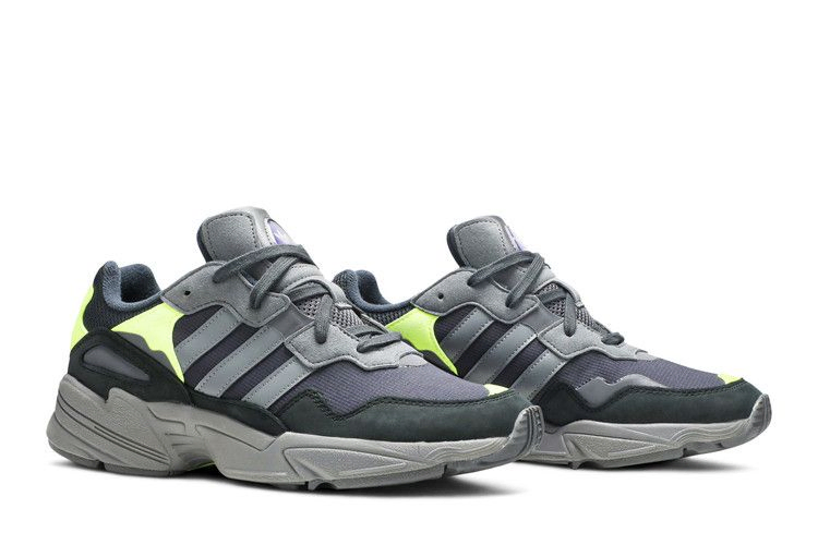 В дизайне adidas Yung-96 прослеживаются модные тенденции 90-х. Модель выполнена в громоздком беговом стиле с использованием сочетания цветов Carbon и Solar Yellow на замше, нубуке и вельвете. Сетчатый язычок улучшает воздухопроницаемость, а промежуточная подошва усилена фирменной системой Torsion Bar System для стабильности.