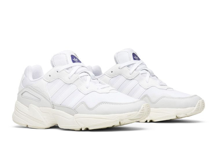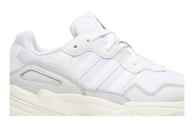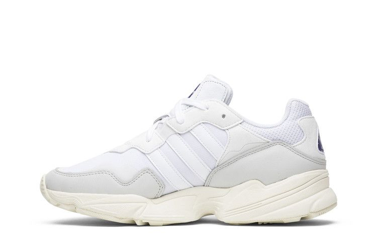 Хотя модель adidas Yung-96 имеет довольно громоздкий силуэт, вдохновленный 90-ми, она отказалась от смелой цветовой палитры, которая была отличительной чертой этого десятилетия. Вместо этого верхняя часть, выполненная из многослойной сетки и нубука, полностью выполнена в белом цвете. Легкая промежуточная подошва из EVA продолжает тему первозданности, хотя оттенок Off-White передает винтажную эстетику. Брендинг adidas на язычке и пятке придает сдержанный оттенок.