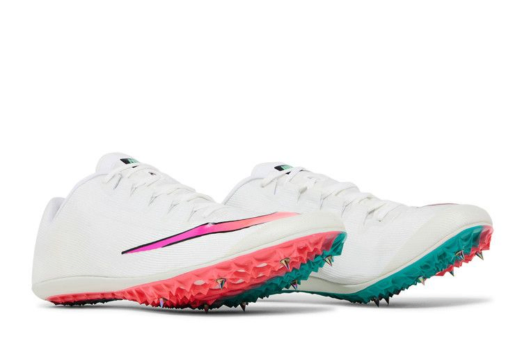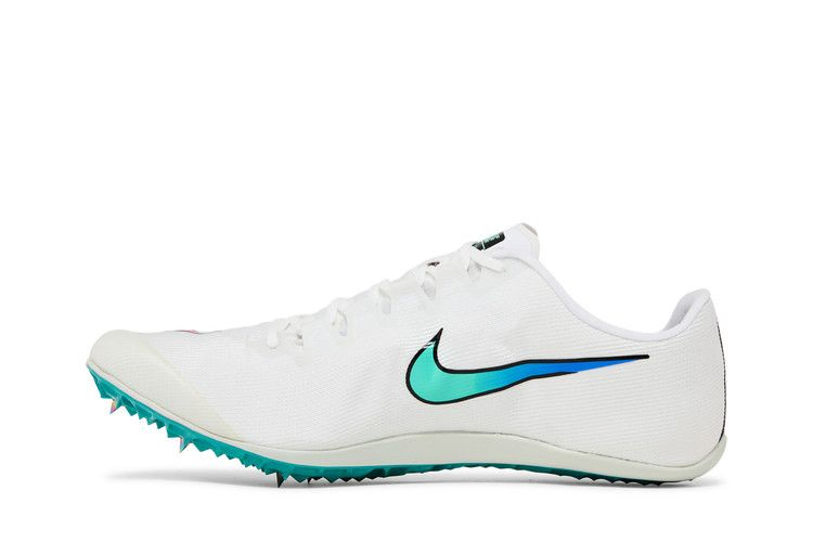 Беговые кроссовки Nike Zoom 400 "White Ombre", созданные для спринтерских соревнований, украшены яркими цветами Swooshes на легком тканом верхе, выполненном в первозданном белом цвете. Интегрированный язычок, обеспечивающий бесшовный контакт с верхней частью стопы, и шнурки в стиле "гилли" обеспечивают надежную и удобную посадку. Низкопрофильная подошва из пеноматериала поддерживается под ногами пластиной из семи шипов, выполненной в градиентном сочетании цветов Hyper Jade и Flash Crimson.