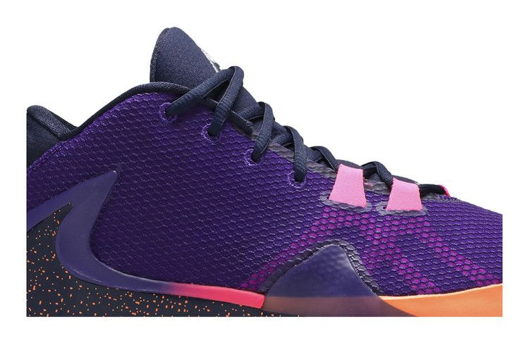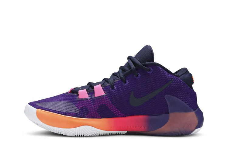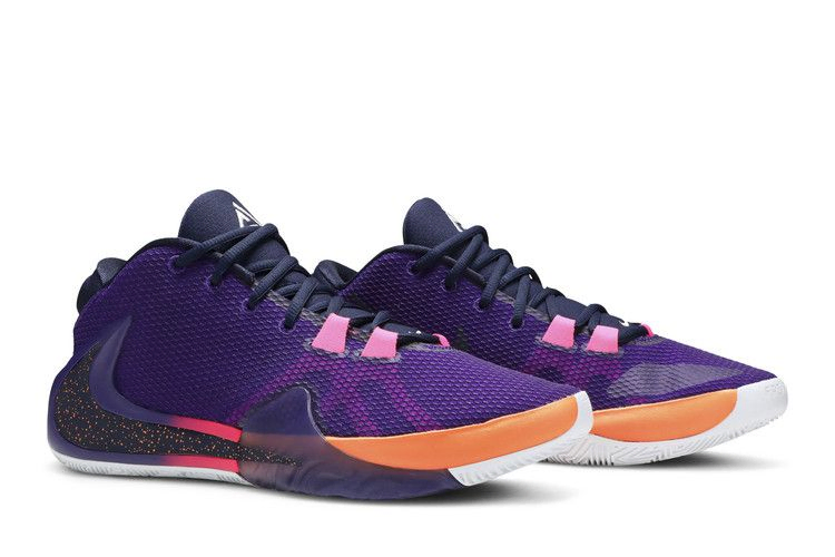 Геймерский эксклюзив NBA 2K20 x Zoom Freak 1 'All Bros 4' имеет яркую цветовую палитру, которая воспевает связь между Джаннисом Антокунмпо и его четырьмя братьями. Низкопрофильный силуэт выполнен из фиолетовой сетки с розовыми внутренними полосами, обеспечивающими фиксацию в передней части стопы. В межподошве, окрашенной в разные цвета и украшенной черным логотипом Swoosh, размещена двухслойная амортизация Zoom Air. Доступ к обуви получили игроки, победившие в игре MyPLAYER Nation в NBA 2K20.