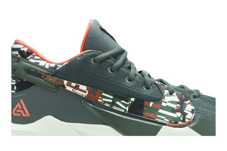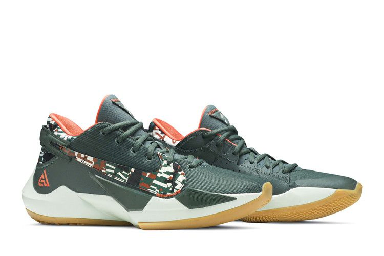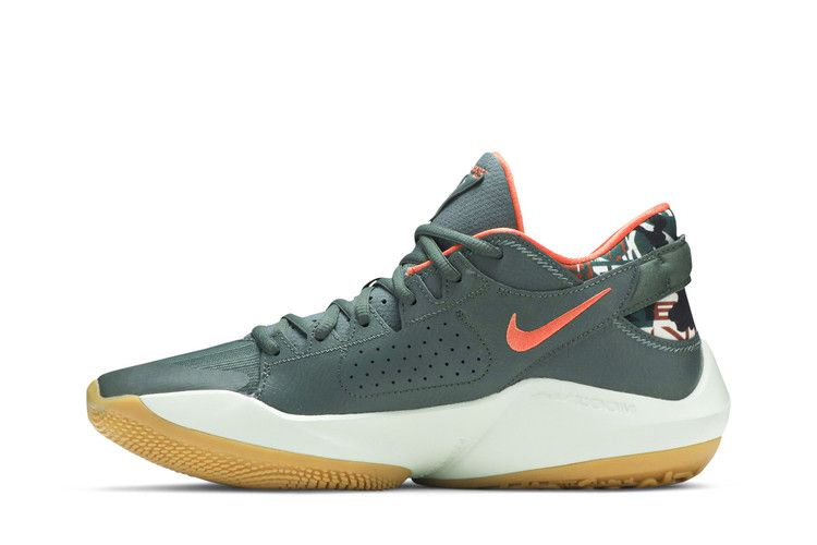 Nike Zoom Freak 2 'Ashiko' демонстрируют многоцветный узор Swoosh на второй фирменной обуви Джанниса Антетокунмпо. Остальная часть верха выполнена из темно-зеленого текстиля с контрастными оранжевыми акцентами, включая личный логотип спортсмена, вышитый на боковой пятке. Литой ТПУ укрепляет межподошву из пеноматериала, а передний блок Zoom Air обеспечивает чуткую амортизацию на твердом покрытии. Подошва из жевательной резины обеспечивает оптимальное сцепление с поверхностью.