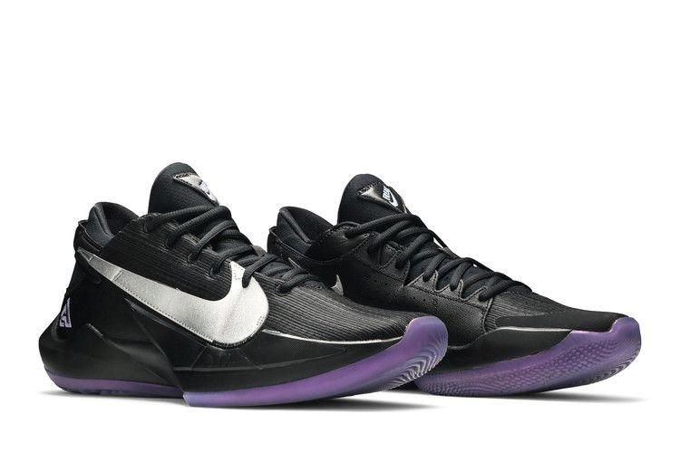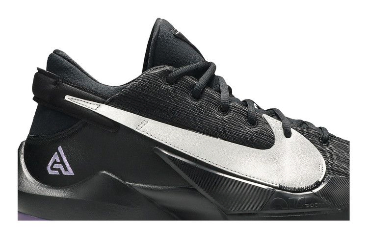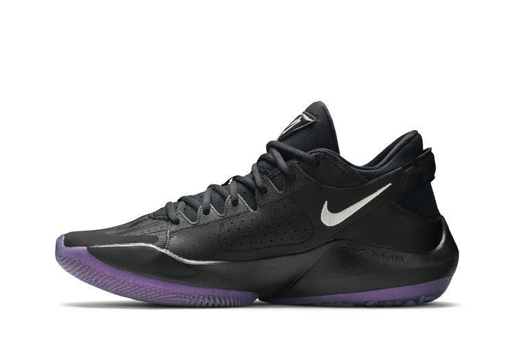 Nike Zoom Freak 2 "Dusty Amethyst" - минималистичный вариант второй фирменной обуви Джанниса Антетокунмпо. Верх из черной сетки, усиленный накладками из искусственной кожи и литым TPU на внешнем носке. Монохроматическая отделка нарушается серебристым металлическим логотипом Swoosh и личным логотипом Джанниса, вышитым фиолетовым цветом на боковой пятке, а также полупрозрачной резиновой подошвой. Амортизатор Zoom Air, расположенный под мячом стопы, обеспечивает быстрое реагирование на игру.