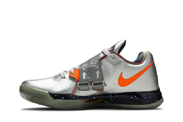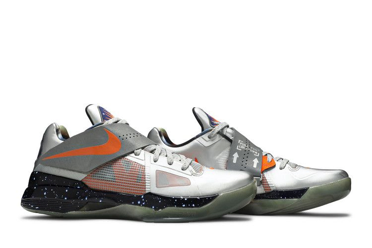 В этой модели Nike Zoom KD 4 All Star "Galaxy" серебристо-металлический синтетический верх с оранжевыми акцентами, вдохновленными летными костюмами астронавтов. Дополнительные элементы включают в себя нашивку с миссией NASA на язычке, вышитый темно-серый брендинг KD на пятке, черную межподошву со звездными крапинками и светящуюся в темноте подошву. Кроссовки были выпущены к Игре всех звезд 2012 года в Орландо вместе с "галактическими" Zoom Kobe 7s, LeBron 9s и Air Foamposite 1s.