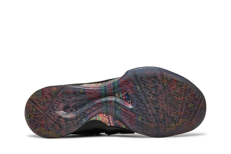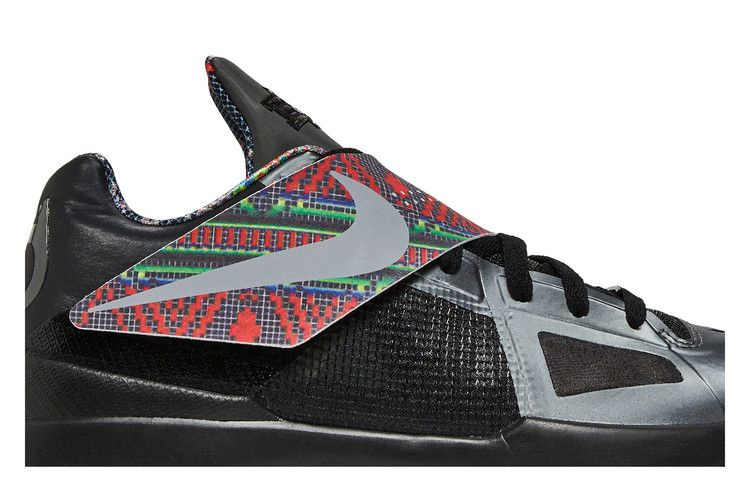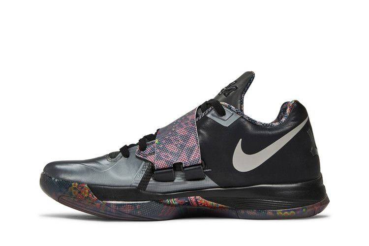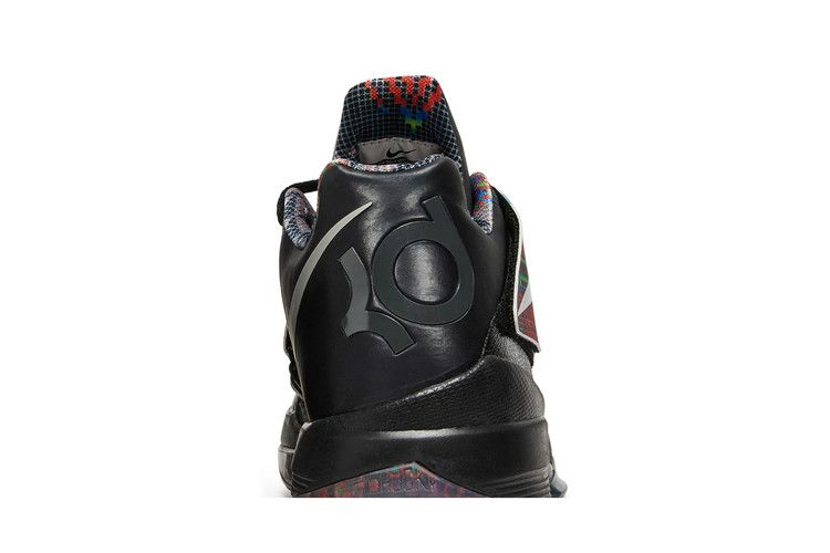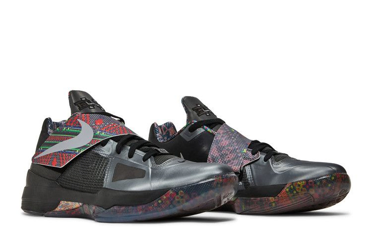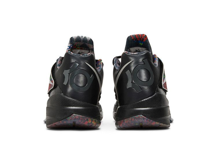 Эта версия Nike Zoom KD 4, четвертой фирменной модели Кевина Дюранта, выпущенной в феврале 2012 года, приурочена к Месяцу черной истории. Низкая модель отличается разноцветным геометрическим узором, вдохновленным традиционным африканским текстильным искусством, на ремешке, подкладке и под ледяной голубой полупрозрачной подошвой. Верхняя часть выполнена из черной ткани Hyperfuse и оформлена в цвете Midnight Fog, язычок украшен фирменной надписью BHM, а подошва - амортизацией Zoom Air.