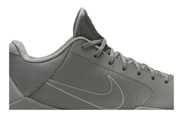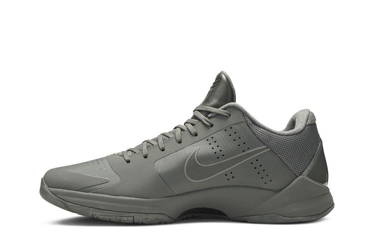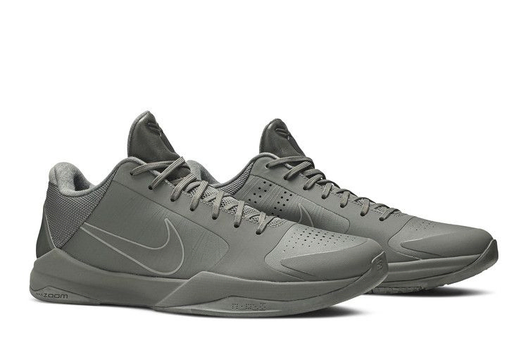 В рамках коллекции Nike "Fade to Black", посвященной знаменитой карьере Коби и его последнему сезону в НБА, модель Zoom Kobe 5 выполнена в тональном оружейно-металлическом цвете, а верхняя часть выполнена из синтетического каучука с кожаными акцентами. Модель оснащена махровым носком для максимального комфорта, а также технологией Flywire для надежной фиксации.