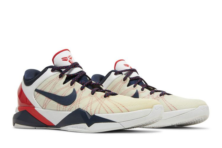 Модель Nike Zoom Kobe 7 System "Olympic" 2012 года чествует команду США в преддверии Олимпийских игр 2012 года в Лондоне, используя патриотичную цветовую палитру из белого, обсидианового и красного цветов. Модель Kobe 7 System поставляется с двумя вариантами сменных стелек: Attack Fast - с промежуточной подошвой из материала Phylon и датчиками Nike Zoom в носочной и пяточной частях, и Attack Strong - с полноразмерной промежуточной подошвой Cushlon и мягкой манжетой на лодыжке. Другие элементы поддержки включают кевларовые тросы Flywire и внешнюю пяточную стойку из углеродного волокна.