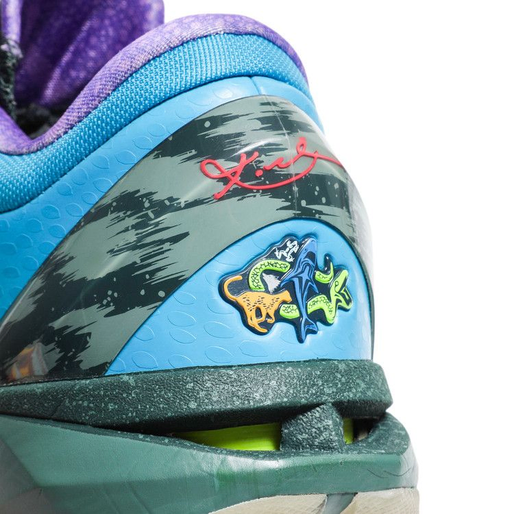 Kobe 7 System поставляются с двумя вариантами сменных стелек, позволяющих игрокам менять амортизацию и поддержку голеностопа в соответствии со своим стилем игры. Вставка "Attack Fast" включает в себя промежуточную подошву Phylon с амортизаторами Nike Zoom в носочной и пяточной частях для легкой отзывчивости, а "Attack Strong" обеспечивает большую защиту и поддержку благодаря полноразмерной промежуточной подошве Cushlon и мягкому голеностопному манжету. Модель "What The Kobe", вдохновленная концепцией mash-up, впервые представленной Nike SB в 2007 году, сочетает в себе несколько различных расцветок Kobe 7, включая Mamba Snake, Cheetah, Poison Dart Frog и Shark. Среди других деталей - кевларовая технология Flywire и внешняя стойка пятки из углеродного волокна.