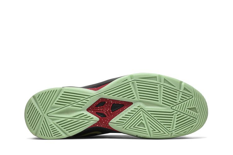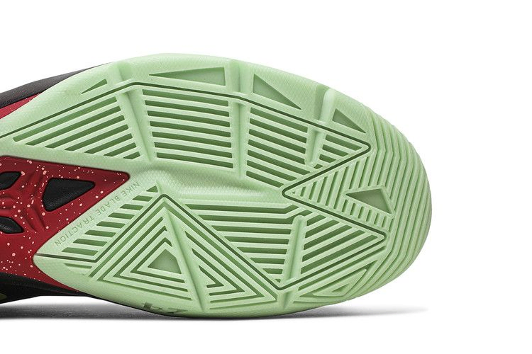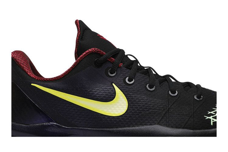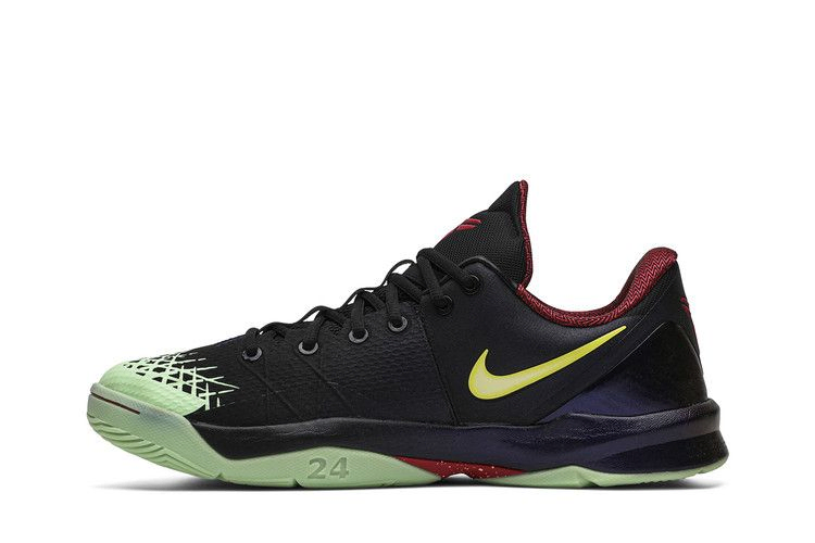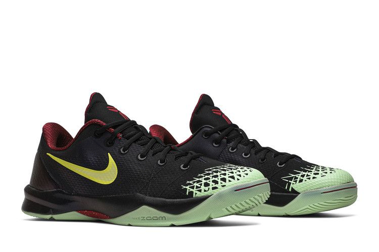 Низкопрофильные Zoom Kobe Venomenon 4 "Glow In The Dark" - это смелый подход к фирменным кроссовкам Коби Брайанта, выпущенным в декабре 2013 года. Его сетчатый верх преимущественно черного цвета, а воротник, язычок и брендинг на пятке выполнены в насыщенном красном цвете. Пятка оснащена синтетической накладкой, которая может похвастаться сверкающим фиолетовым оттенком. В нижней части кроссовка находится светящаяся в темноте подошва, благодаря которой он и получил свое название.