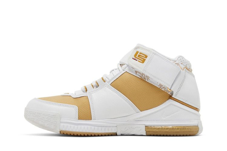 Переиздание 2022 года Nike Zoom Lebron 2 Retro "Maccabi" повторяет редкую расцветку PE, которая первоначально появилась на ногах Леброна Джеймса во время предсезонной выставочной игры 2006 года между "Кливленд Кавальерс" и тель-авивским "Маккаби". Верхняя часть мид-топа выполнена из золотистой баллистической сетки с белыми кожаными накладками на носке, средней части стопы и пятке. Регулируемый ремешок обхватывает воротник, украшенный сложной лазерной графикой золотистого цвета. Чувствительная амортизация обеспечивается за счет носочного и пяточного блоков Zoom Air, заключенных в прочную оболочку Pebax.