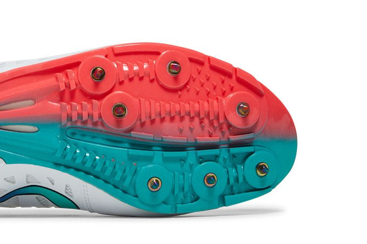 Nike Zoom Long Jump 4 'White Ombre' сочетают в себе фиксирующую посадку и отзывчивую пластину для оптимальной стабильности и мощности во время взлета. Дышащая белая сетка и тональная синтетическая кожа использованы в верхней части, которая закреплена регулируемым ремешком на передней части стопы и молнией, обхватывающей шнурки. Низкопрофильная промежуточная подошва с клином из пеноматериала высокой плотности обеспечивает легкую амортизацию, а в передней части стопы находится пластина длиной 3/4 с семью съемными шипами.