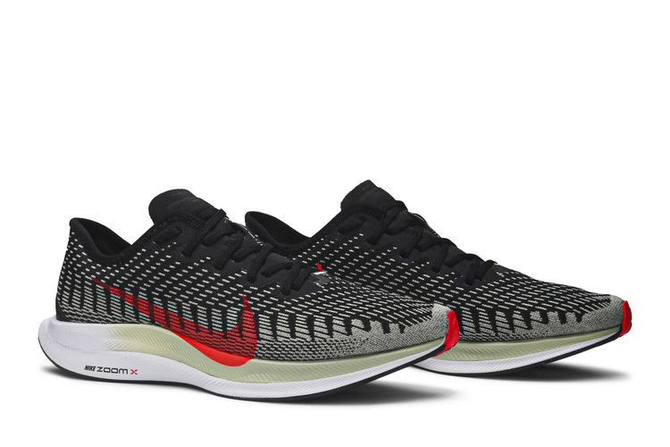 В кроссовках Nike Zoom Pegasus Turbo 2 "Black Olive Aura" используется двухцветный сетчатый верх, оснащенный частичным внутренним рукавом для легкой поддержки от носка до середины стопы. Контрастный красный логотип Swoosh спускается к ультралегкой подошве Nike ZoomX, обеспечивающей возврат энергии и плавный ход. Резиновая подошва обеспечивает многослойное сцепление с поверхностью от носка до пятки, причем последняя расположена под углом кверху, чтобы обеспечить первоначальное касание и плавный переход.