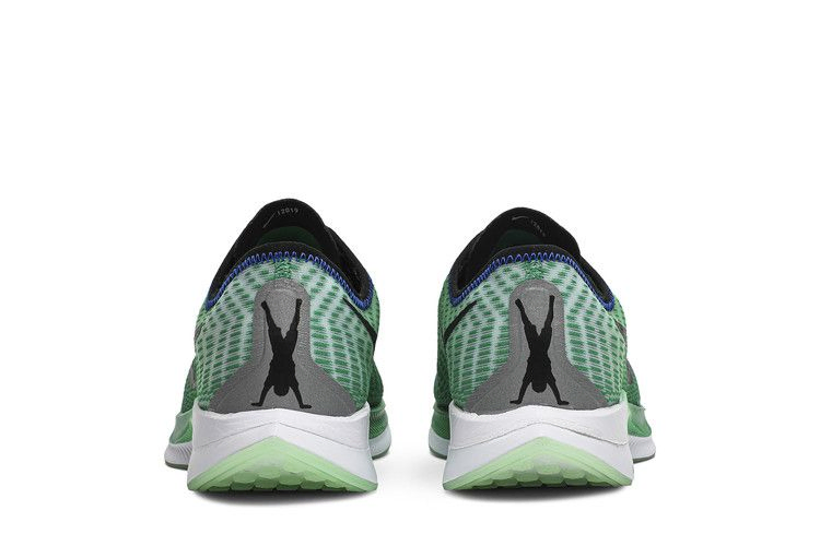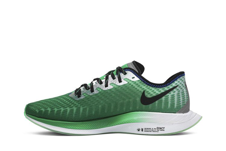 Модель Zoom Pegasus Turbo 2 для коллекции Doernbecher Freestyle была разработана Сойером Миллером, пациентом, проходящим лечение в детской больнице. Зеленый сетчатый верх кроссовок, появившийся в декабре 2019 года, отражает традицию, заложенную в его начальной школе. На боковой стороне Swoosh красуется панда, на пятке нарисована его стойка на руках, а по язычку идут имена его медицинской команды. На подошве - отпечаток лапы его собаки.