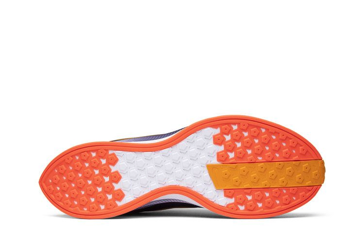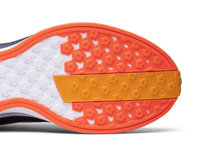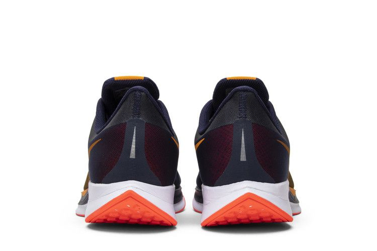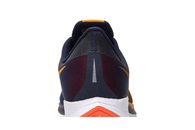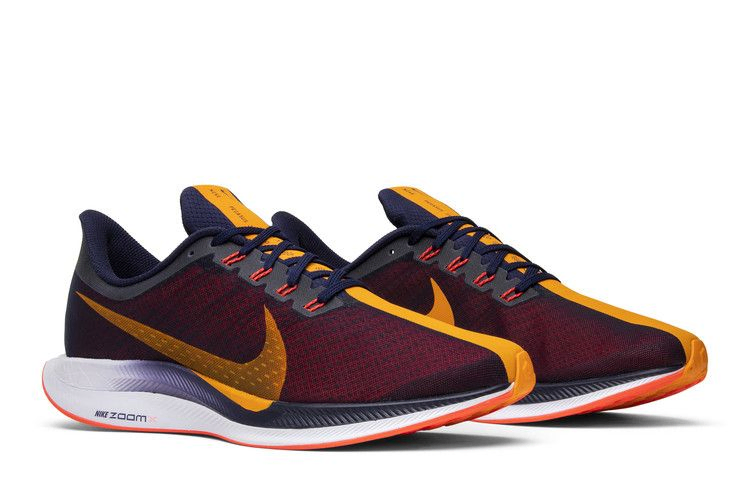 Nike Zoom Pegasus Turbo, известные своим балансом стиля и производительности, вышли в сентябре 2018 года в яркой версии под названием Orange Peel. В этой уникальной расцветке сочетаются цвета Orange Peel, Flash Crimson, черный и Moon Particle с накладкой Blackened Blue и смелой гоночной полосой, проходящей по центру. Другие детали включают малиновую стельку, подошву и кабели Flywire, а также градиентную подошву Navy/White Zoom X.
