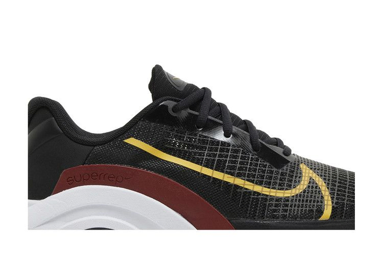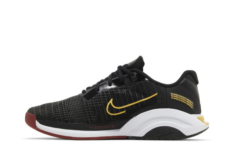 Универсальные тренировочные кроссовки Nike ZoomX SuperRep Surge 'Black Dark Cayenne' с воздухопроницаемым черным сетчатым верхом и накладкой с трафаретным рисунком для дополнительной прочности. Зажим для гребцов на пятке обеспечивает плавный переход на гребной тренажер и обратно, а выраженные боковые дуги, встроенные в подошву из вспененного материала ZoomX, повышают сдерживание во время силовых тренировок. Резиновая подошва с сетчатым протектором обеспечивает надежное сцепление с педалями или полом.