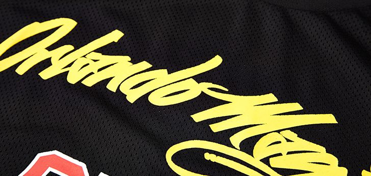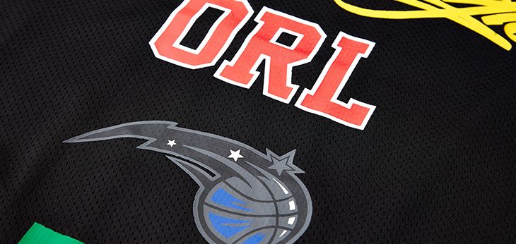 Майка из летней коллекции НБА 2016 года чёрной расцветки с символикой команды Орландо Мэджик. На груди и спине расположены принты любимой команды. Также есть белая расцветка.- Материал: лён, хлопок