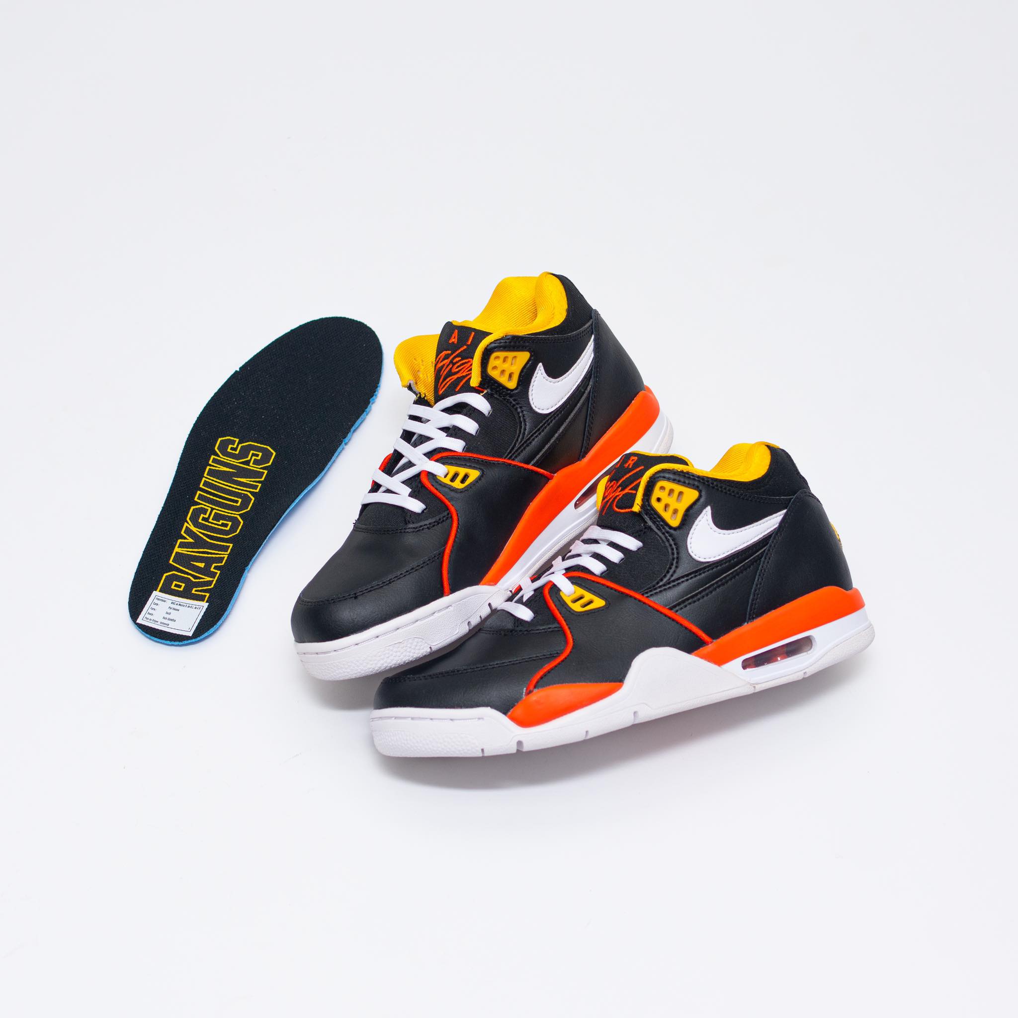 Модель Nike Air Flight 89 "Rosewell Rayguns" вдохновлена вымышленной командой АБА 70-х годов, представленной в баскетбольной кампании Nike 2002 года, в которой участвовали Винс Картер, Джерри Стэкхаус и Барон Дэвис. Ретро-кроссовки выполнены из черной кожи с контрастными оранжевыми и желтыми акцентами в знак уважения к выездной форме Rayguns. На задней части пятки вышита баскетбольная графика команды, а надпись "Rayguns" нанесена на носок левой части кроссовка.- Цвета: Black/White/Team Orange/University Gold