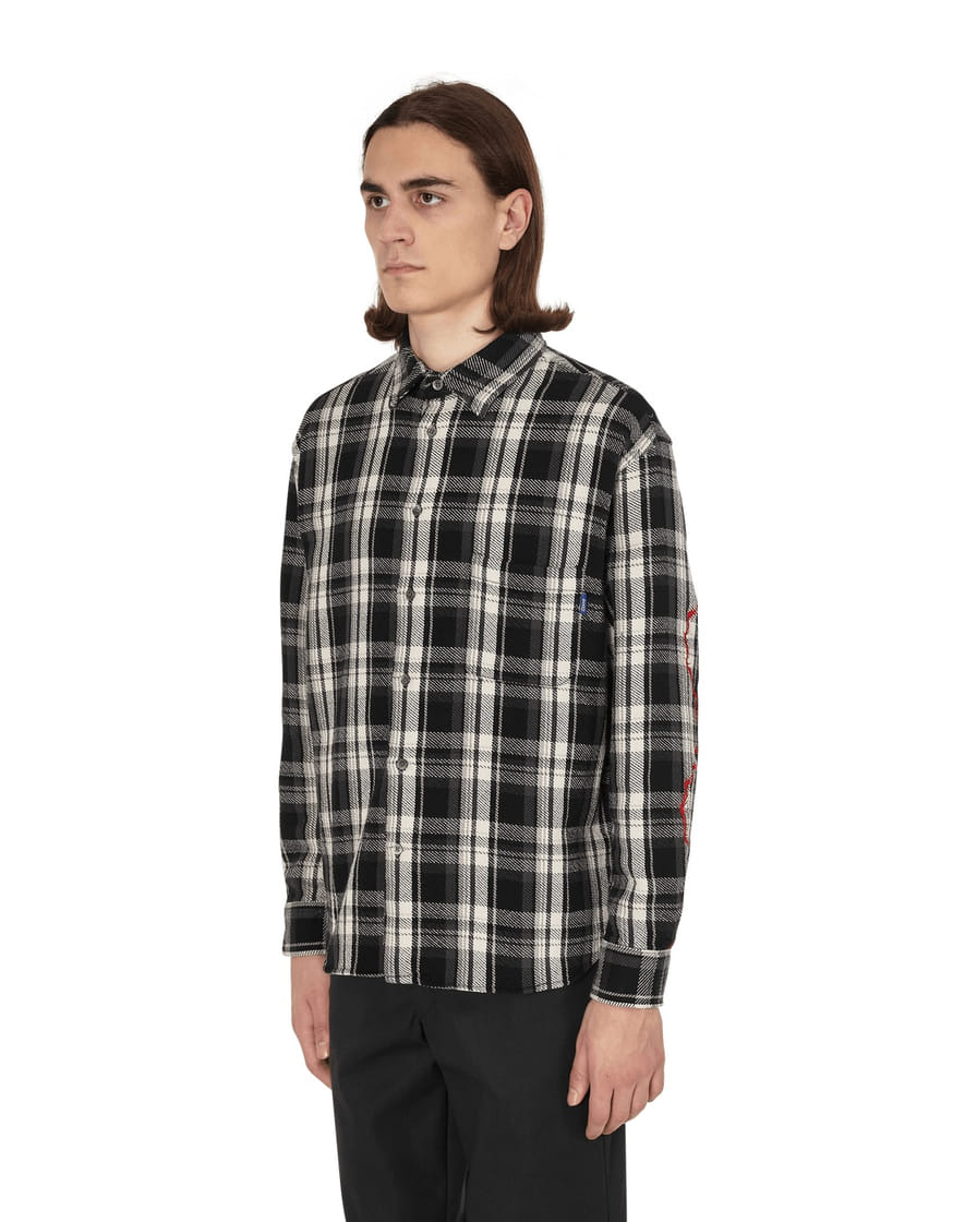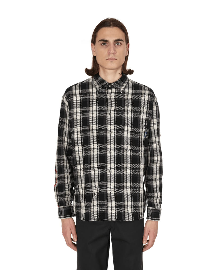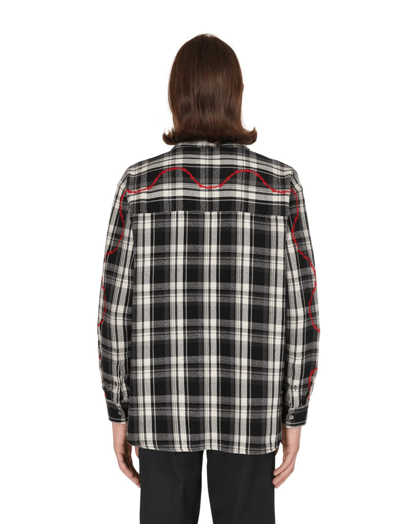 Рубашка Awake Awake Heavyweight Barbed Wire Flannel Black выполнена из высококачественного материала в черном цвете. Хлопковая фланелевая рубашка с длинным рукавом с клетчатым рисунком в черно-белых тонах. Вышитый красный рисунок на рукавах и спине. Расправленный воротник, застежка на пуговицах спереди. Карман и текстильная нашивка с логотипом на груди. Манжеты на одной пуговице и вентилируемые боковые швы.