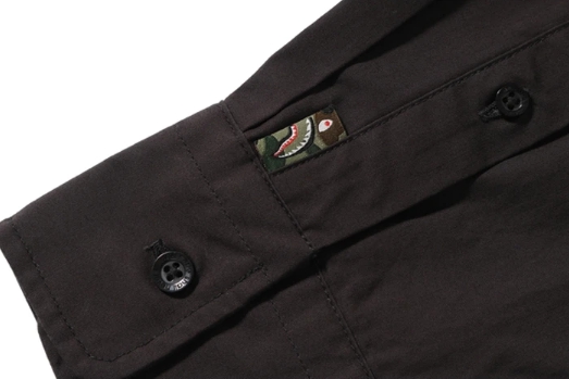 Рубашка BAPE Shark BD Shirt Black имеет стильный дизайн и черную расцветку с узнаваемой отделкой бренда на груди. На спине отделка цветным камуфляжным принтом, а манжет украшает небольшой дополнительный логотип бренда. Рубашка из высококачественного хлопка со стандартными длинными рукавами и полноценным воротничком.- Машинная стирка