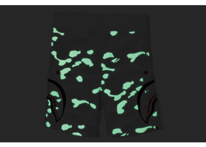 Японский бренд с акулой зимой 2018 года выпустил коллекцию шорт BAPE City Camo Side Shark Sweat. По бокам принты с глазами и челюстью, сзади карман, в темноте подсвечиваются.- Материалы: хлопок