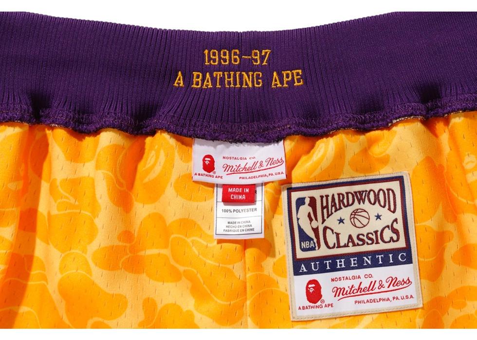 Частью XXV юбилейного сезона BAPE выпустила культовое сотрудничество с Mitchell & Ness, в котором представлены куртки, джерси, шорты и футболки из лучших команд НБА. Одной из самых популярных вещей в коллекции стала джерси Lakers ABC Basketball Swingman Jersey Yellow. В такой же расцветке выпустили и шорты. Желтые шорты Bape x Mitchell & Ness Lakers ABC Basketball содержат фоновый рисунок BAPE Camo с обоих сторон, фиолетовый логотип BAPE на передней части.