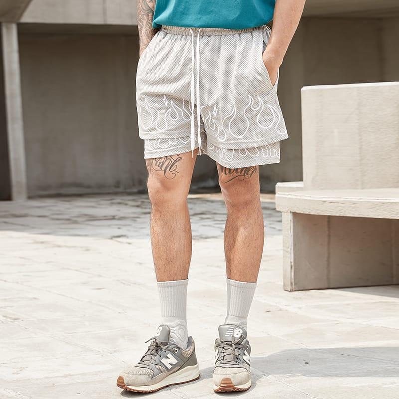 Шорты Ehot Flames Grey Shorts изготовлены из легкой комфортной ткани, так что подходят как для повседневной носки, так и для занятий спортом. Светло-серые двухслойные шорты украшены вышитыми контурами языков пламени в стиле ретро. Спортивная сетчатая материя свободно пропускает воздух, а пояс на резинке и шнурке плотно сидит на талии.